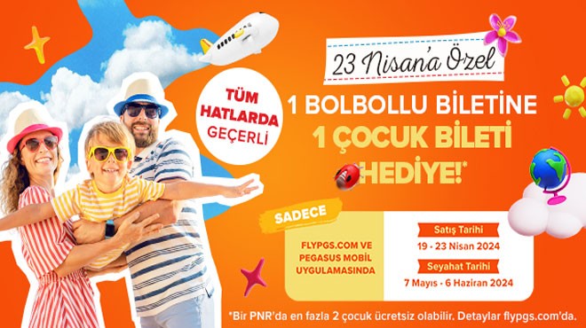 Pegasus'tan 23 Nisan kampanyası... 19-23 Nisan tarihleri arasında alınacak biletlerde, çocuklar bedava uçma şansı yakalıyor