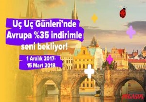 Her ayın başında düzenlenen geleneksel “Uç Uç Günleri”nin Kasım ayı kampanyası kapsamında biletlerini 2-3 Kasım tarihleri arasında alanlar, 1 Aralık 2017 – 15 Mart 2018 tarihleri arasında Prag, Budapeşte, Barselona, Madrid, Londra-Stansted, Berlin, Roma ve Viyana’ya  yüzde 35’e varan indirimli fiyatlarla uçabiliyor. Pegasus’un Kasım ayı Uç Uç Günleri kampanyası Pegasus Plus üyelerine yüzde 35, üye olmayan misafirlerine ise yüzde 25 indirimli uçma fırsatı sunuyor.