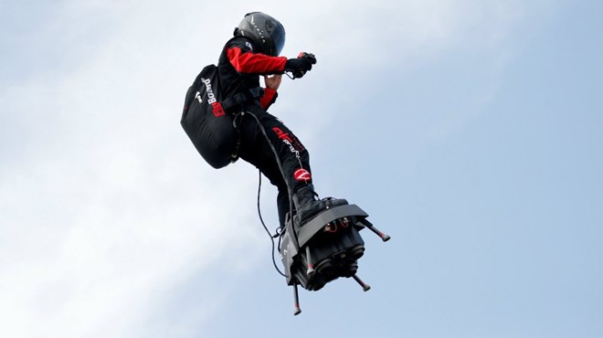 Fransız mucit Franky Zapata, flyboard adını verdiği uçan kaykayıyla yaptığı bir gösteri uçuşunda göle düştü.