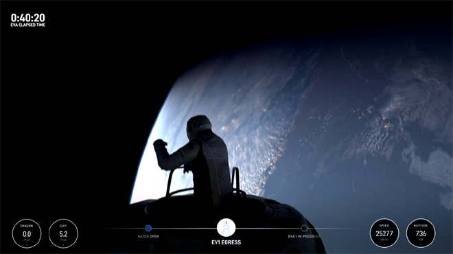 Özel görevin finansörü olan milyarder iş insanı Jared Isaacman, askeri pilot Scott Poteet ve SpaceX mühendisleri Anna Menon ile Sarah Gillis, 732 kilometre irtifada tarihin ilk özel uzay yürüyüşünü gerçekleştirdi.