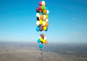 Tom Morgan isimli İngiliz, bu uçuş sırasında 2 bin 438 metre yüksekliğe ulaştı. "Up" isimli ünlü çizgi filmi akıllara getiren bu denemede, Morgan, bir kamp sandalyesine bağlanmış durumdaydı. 38 yaşındaki maceracı, "büyülü" diye tanımladığı yolculuk öncesi ise 2 günü balonları şişirmekle geçirdi.