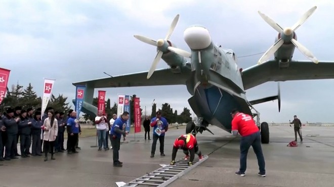 Kırım’da bir sporcu beline bağlanan iple 31,5 ton ağırlığındaki uçağı çekerek rekor kırdı. Dzhamshid Ismatillayev adlı sporcu, dördüncü denemesinde uçağı, 40 saniyede 1 metre 12 cm ilerletmeyi başardı. Böylece Rusya’da ‘en uzun mesafe askeri uçak çekme’ rekorunu kırdı.