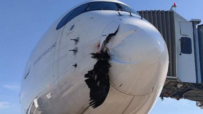 Iberia Airlines'ın IB6586 sefer sayılı Airbus A350-941 sefer sayılı uçağı, İspanya'nın Madrid Havalimanı'na inişte kuşa çarptı.