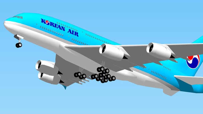 Güney Kore'nin bayrak taşıyıcısı Korean Air’in filosunda 10 adet Airbus A380 tipi uçak bulunuyor. Halen sayısı 10 olan Super Jumbo'dan ise sadece biri hizmette tutuluyor.