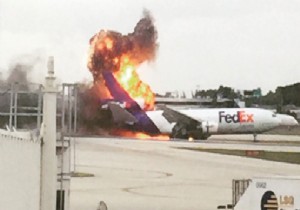 ABD'de bir gün içinde ikinci uçak yangını çıktı. Miami Fort Lauderdale Hollywood Havaalanı'nda iniş takımı arıza yapan Fedex uçağı alev aldı