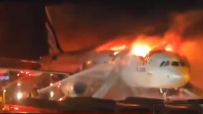 Güney Kore Busan Gimhae Havalimanı'nda kalkış için hazırlanan Air Busan'a ait bir A321 tamamen yandı