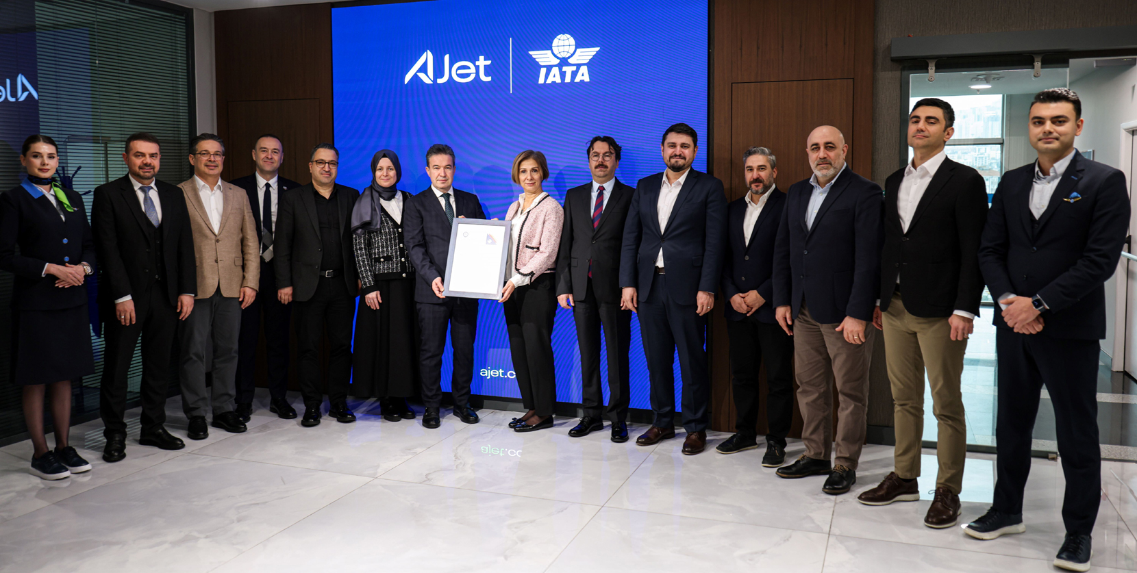 Gerekli denetim ve değerlendirme süreçlerini başarıyla tamamlayıp; kuruluşunun üzerinden iki yıl geçmeden IATA üyesi olan AJet’in hizmet kalitesi uluslararası düzeyde bir kez daha tescillendi. IATA sertifikası AJet Genel Müdürlüğü’nde düzenlenen törenle IATA Türkiye Bölge Müdürü Funda Çalışır tarafından AJet Genel Müdürü Kerem Sarp’a takdim edildi. Kerem Sarp, AJet’in IATA sertifikasını teslim aldığını sosyal medya hesabından duyurdu.