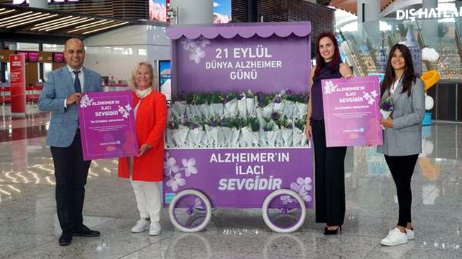 İGA İstanbul Havalimanı, 21 Eylül Dünya Alzheimer Günü’ne farkındalık yaratmak için hastalığa yakalanmış yolcularına mor çiçeklerle karşıladı