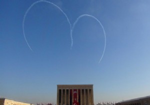 Türk Yıldızları ve Solotürk, Ulu Önder Mustafa Kemal Atatürk'ün vefatının 77. yıl dönümü dolayısıyla Anıtkabir üzerinde yaptıkları prova uçuşunda, kalp ve sonsuzluk şekli çizdi