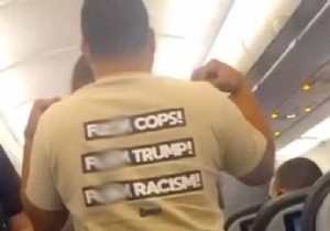 American Airlines uçağına Trump’a ve polislere küfür ifadeleri yazılı bir tişörtle binen yolcu, kabin memurlarının uyarısıyla tişörtünü değiştirmek zorunda kaldı