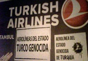 Arjantin'in başkenti Buenos Aires'te THY reklamlarına sözde ‘Ermeni soykırımı çıkartmaları’ yapıştırılarak boykot çağrısında bulunuldu.