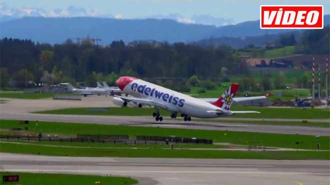Zürih Havalimanı'nın 16 numaralı pistinde koşturan uçak, önce havalandı ancak sonrasında tekrar piste teker koymak zorunda kaldı. Pilotlar yine de kalkıştan vazgeçmedi ve uçağı havalandırmayı başardılar.