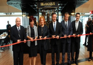 Dış Hatlar Terminali’nde pasaport kontrolü sonrası restoranlar mahallesinde hizmete giren Selamlique Cafe’nin açılışını Selamlique İstanbul Kurucu Ortaklarından Banu Yentür ile TAV İcra Kurulu Başkanı Sani Şener ve BTA İcra Kurulu Başkanı Sadettin Cesur yaptı.