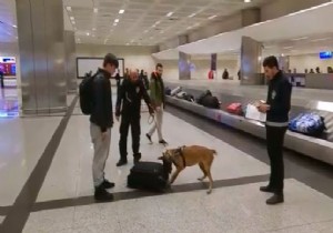 Türk Hava Yolları’nın tarifeli uçağı ile dün gece Amsterdam'dan İstanbul'a gelen Hollandalı yolcuların valizleri Dış Hatlar Terminali gümrüklü salonda bagaj bekleme noktasında köpekle arandı.