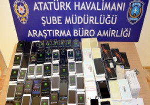 Atatürk Havalimanı Şube Müdürlüğü Araştırma Amirliği ekipleri, Cezayir uyruklu iki yolcuda yurda kaçak olarak sokulmak istenen kaçak telefonlar ele geçirdi