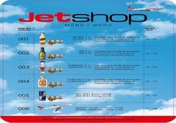 Atlasjet yolcuları, seyahat esnasında oturdukları yerden, koltuk ceplerinde bulunan Jetshop menü kartındaki seçeneklerden istediklerini hosteslere belirterek, ürünü satın alabiliyorlar.