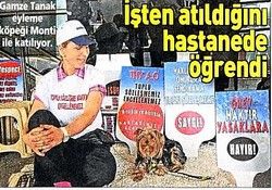 Atatürk Havalimanı'nda 13 gündür süren eyleme köpeği 'Monti' ile katılan Gamze Tanak "Ameliyat olduktan sonra raporumu onaylatmaya hastaneye gittiğimde işten atıldığımı öğrendim" dedi.