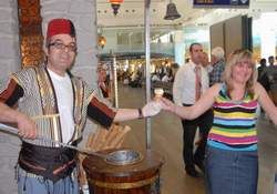 Ülkelerine dönmek üzere uçağa binmeden önce Maraş Dondurması’na, macun ve pamuk şekerine hücum eden turistler, bol bol hatıra fotoğrafı da çektiriyor.