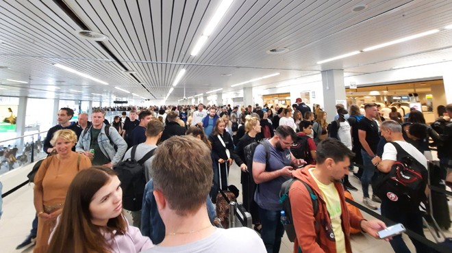 KLM'nin, hafta başından itibaren planlı uçuşlara geri döndüğü açıklamasına rağmen havalimanındaki güvenlik kuyrukları ve rötarlar devam ediyor.