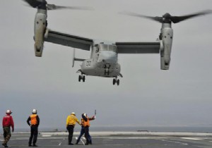 ABD donanmasının sıklıkla kullandığı, uçak gemilerine helikopter gibi iniş-kalkış yapabilen MV-22 Osprey tipi askeri uçak düştü