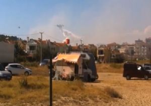 Balıkesir'in turistik merkezlerinden Ayvalık ilçesi Sarımsaklı mevkiinde çıkan orman yangınını söndürme çalışmalarına kısa süre THK uçakları da katıldı.