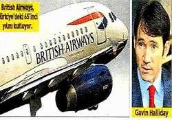 İngiliz Havayolları British Airways Avrupa ve Afrika Genel Müdürü Gavin Halliday, büyük bir potansiyeli bulunan Türkiye'nin bölgedeki etkisinin hızla arttığını belirterek, "Burada olmaktan mutluyuz" dedi.  17 Eylül 1946'da Londra-Ankara seferi ile Türkiye uçuşlarına başlayan British Ainvays'in  Türkiye'deki  65. yılı dolayısıyla düzenlenen toplantıda konuşan Halliday, British Ainvays'in 92 yıllık köklü bir tarihçesi bulunduğunu ve Türkiye gibi hızlı büyüyen bir ülkede 65 yılı geride bırakmanın kendileri için önemli bir kilometre taşı olduğunu söyledi.  Türkiye'de hizmet verdikleri tarihten bu yana pazarda güçlü bir konumları bulunduğunu vurgulayan Halliday, "Türkiye ile olan bağımız daha uzun yıllar devam edecek. Çünkü Türkiye, içinde kimsenin tahmin edemeyeceği bir potansiyel barındıran, büyük adımlarla ilerleyen, gelişmeye hızla devam eden bir ülke. Türkiye, korkunç büyük potansiyele sahip. Bölgedeki etkisi de hızla artmakta. Burada olmaktan dolayı mutluyuz. Piyasadaki konumumuzu sağlam tutmak için elimizden geleni yapacağız" diye konuştu