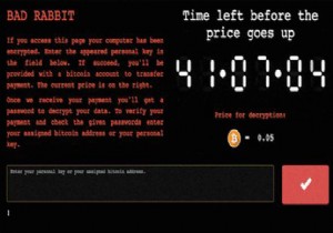 Virüsün bulaşması durumunda ekrana kırmızı yazılı ‘Bad Rabbit’ uyarısı çıkıyor ve 48 saate ayarlı saat geri saymaya başlıyor. Bilgisayarın sahibine bir site adresi verilerek buraya 0,05 bitcoin (yaklaşık 300 dolar) ödeme yapılması istenilmekte. Ödeme yapıldıktan sonra bilgisayarı çözen şifre veriliyor. Ödemenin 48 saat içerisinde yapılmaması durumunda fiyat iki katına yükseliyor ve zaman geçtikçe fiyatı yükseltiyorlar.