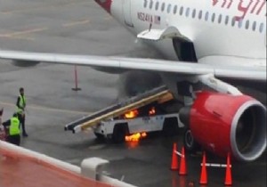 ABD’nin SeattleTacoma Uluslar arası Havalimanı’nda bir bagaj yükleme aracı Virgin America uçağının altında yandı. O anlar yolcular tarafından böyle görüntülendi.