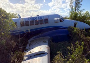 Flamingo Air’e ait Beech 99 tipi uçak, Bahamalar Exuma’da Black Point Havaalanına (MYEB) iniş yaptıktan sonra sağ iniş takımının kırılması üzerine pistten çıktı ve çalılık arazide durabildi.