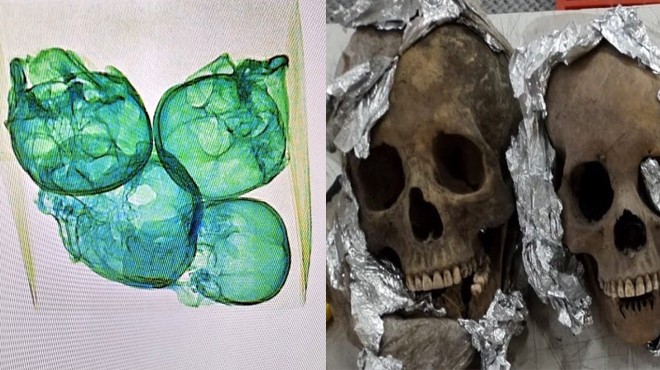 Meksika Ulusal Muhafızlarından yapılan açıklamaya göre, Queretaro kentindeki havalimanında, X-ray cihazından geçen bir karton kutunun içinde garip şekiller tespit edilmesi üzerine, kontrol noktasına güvenlik görevlileri çağrıldı. Güvenlik görevlileri kutuyu açtıklarında, alüminyum folyoya sarılmış 4 insan kafatası buldu.