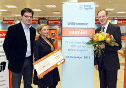 Berlin Havaalanları şirketinin yöneticilerinden Rainer Schwarz, Berlinli Sina Boguslavsky adlı kadının bu yılki 23 milyonuncu yolcu olduğunu belirterek, yolcu sayısının bu yılın sonuna kadar 23,9 milyona ulaşmasının beklendiğini belirtti. Yolcu sayısının 2002 yılına göre iki katına çıktığını ifade eden Schwarz ayrıca, eski başbakanın anısına adı "Willy Brandt" olarak değiştirilen ve uçuş kodu BER olan büyütülmüş Schönefeld Havaalanı'nın, yeni ismiyle planlandığı gibi 3 Haziran 2012 tarihinde hizmete gireceğini ve havaalanından ilk olarak Lufthansa ve Air Berlin'e ait 2 adet yolcu uçağının havalanacağını sözlerine ekledi.