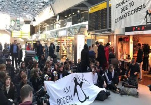 Berlin Tegel havalimanı, uluslararası havacılık karşıtı aktivister oturma eylemi gerçekleştiriyor. Çoğu penguen kostümü giymiş olan aktivistler, hava yolculuğundan kaynaklanan sera gazı emisyonlarını protesto etmek için havaalanı girişinde toplandılar. Eylemle ilgili olarak polisler de çevre güvenliğini sağladı.