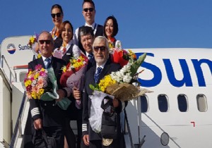Antalya - İstanbul - Antalya olan son uçuşunu tamamlayan Hüseyin Kaptan için SunExpress plazada bir veda töreni düzenlendi, pasta kesilerek kendisine teşekkür plaketi verildi.