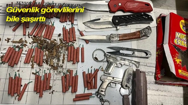 ABD'de Los Angeles Havalimanı'nda Ulaştırma Güvenliği İdaresi (TSA) görevlileri tarafından bir kadın yolcunun el bagajında bulunan yasaklı maddeler arasında 80'den fazla havai fişek, üç bıçak, iki replika ateşli silah ve bir biber gazı kutusu yer aldı.