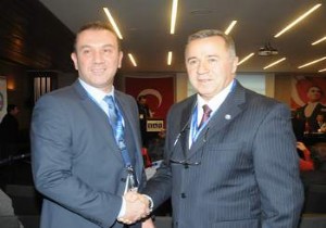 TALPA Genel Kurulu'nda Beyaz Liste’nin adayı İlyas Karagülle ve Mavi Liste’nin adayı Mehmet Ayhan Günal, yaptıkları konuşmaların ardından gazetecilerin isteği üzerine birlikte poz verdiler.