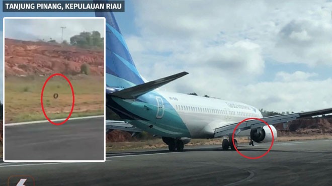 Endonezya'nın Riau Adaları'nda bulunan Tanjung Pinang Havaalanı'nda Garuda Indonesia havayolu şirketine ait Boeing 737-800 tipi uçağın iniş esnasında burun lastiklerinden birisi koptu.
