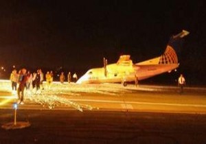 İniş takımları açılmayan uçak burun üzerine indi