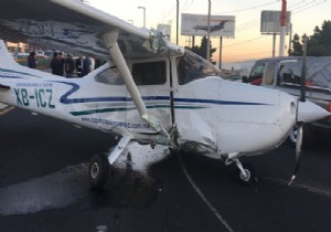 Meksika’da motor arızası yaşayan Cessna 182 tipi bir uçak caddeye acil iniş yaptı