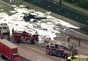 Cessna 310 tipi, çift motorlu uçağın pilotu kalkıştan hemen sonra acil durum bildirdi. Uçak, havalandığı John Wayne Havalimanı’na dönüşü sırasında, yere çakılmak üzereyken otoyoldaki bir aracı sürükledi ve alev aldı. Otomobildekiler olaydan yara almadan kurtuldu. Uçağın pilotu ile yardımcısının ise ağır yaralandığı bildirildi.