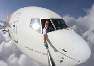 UÇAĞIN PENCERESİNDEN SARKIP ÖZÇEKİM YAPTI