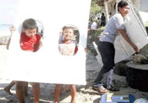 Endonezya'nın turistik Bali adasında iniş sırasında denize düşen yolcu uçağının enkazı çocuklar için oyuna döndü.