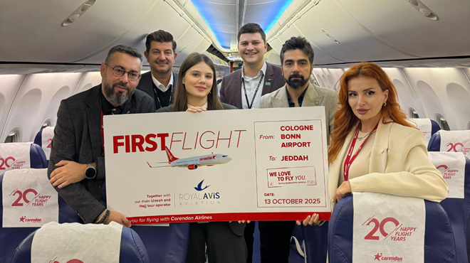 Corendon Airlines’ın kutsal topraklara yönelik yeni uçuş operasyonunun ilk seferi, 13 Ekim 2025 Pazartesi sabahı Köln/Bonn Havalimanı’ndan Cidde’ye başarıyla gerçekleştirildi. Bu uçuşla birlikte Corendon Airlines, 20. yılında Avrupa’dan kutsal topraklara doğrudan ulaşımda yeni bir dönemi başlatmış oldu.