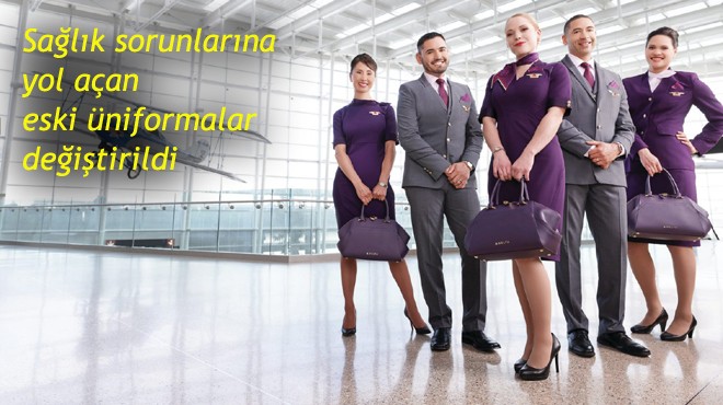 Delta Airlines’ta, kabin ekiplerinde sağlık sorunlarına yol açan üniformalar yenilendi. Şirket yönetimi personele yaptığı tebligatla geçtiğimiz hafta pazartesi gününden itibaren siyah beyaz renklerden oluşan kendi kıyafetleri yerine yeni üniformaların giyilmesi talimatını iletti.