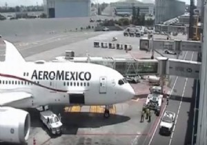 Deprem anı Mexico City Havaalanı'ndaki güvenlik kameralarına yansıdı. Peş peşe yaşanan depremler nedeniyle sarsılan ve yüzlerce kişinin hayatını kaybettiği Meksika’da, deprem anında yaşananlar kameralara yansımıştı. Deprem anında Mexico City Havaalanı'ndaki yolcu körüğünde park halinde bulunan Aeromexico’ya ait B787 tipi uçağın nasıl sallandığı güvenlik kamera görüntülerine böyle yansıdı.