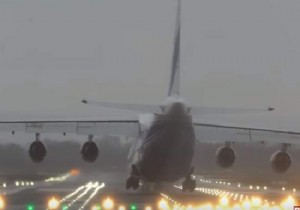 Antonov AN-124 Köln Havalimanı’na inişi sırasında şiddetli rüzgar nedeniyle zor anlar yaşadı