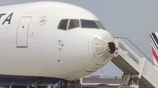 Delta Havayolları uçağı, dolu fırtınası ve türbülans nedeniyle önemli hasar gördü