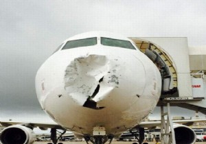 Şiddetli dolu uçağın kokpit camına ve radomuna hasar verdi