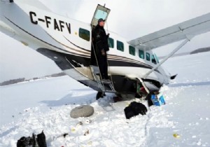 Cessna 208 Caravan donmuş bir göle acil iniş yaptı