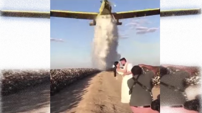 Brezilya’nın Sorriso bölgesinde fotoğrafçılık yapan Wellinton Barbosa, Priscila Serraglio ve Alisson Picinin çiftinin düğün fotoğrafı çekimi sırasında yangın söndürme uçağı kullandı. Çiftin arkasından yaklaşarak alçalan yangın söndürme uçağı, çiftin üzerine su boşalttı. Barbosa ise o sırada çiftin fotoğraflarını çekti. O anlar saniye saniye kameralara yansıdı.