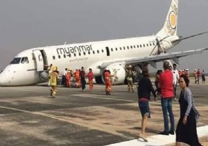 Yangon-Mandalay seferini yapan Myanmar Airlines'e ait Embraer 190AR tipi uçak Mandalay Havalimanı pistine burun üstü iniş yapmak zorunda kaldı.